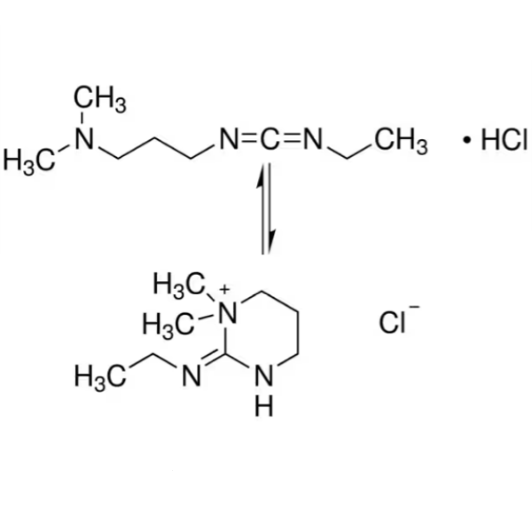 1-(3-Dimethylaminopropyl)-3-Ethylcarbodiimidhydrochlorid (EDC·HCl) (CAS: 25952-53-8) ist ein weißes kristallines Pulver, leicht zerfließend, wasserlöslich, löslich in Ethanol, wird als Aktivierungsreagenz für Carboxylgruppen in der Amidsynthese verwendet, wird auch zur Aktivierung von Phosphatgruppen, zur Vernetzung von Proteinen und Nukleinsäuren und zur Herstellung von Immunkopplern verwendet. EDC-HCl wird im pH-Bereich von 4,0-6,0 verwendet und oft in Verbindung mit N-Hydroxysuccinimid (NHS) oder N-Hydroxysulfosuccinimid-Natriumsalz verwendet, um die Kopplungseffizienz zu verbessern.