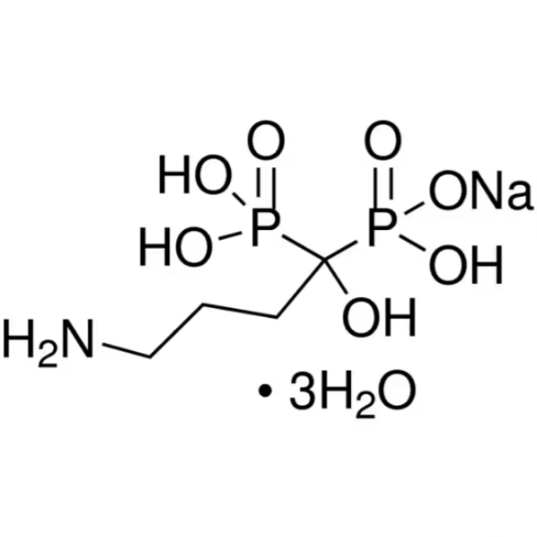 Natriumtrihydrogen (4-amino-1-hydroxybutyliden)diphosphonat, Trihydrat [121268-17-5].