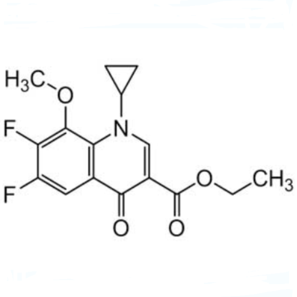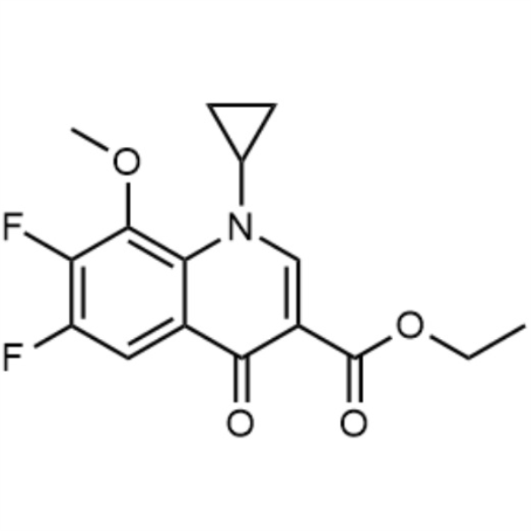 Ethyl 1-Cyclopropyl-6,7-Difluor-1,4-Dihydro-8-Methoxy-4-Oxo-3-Chinolincarboxylat (Gatifloxacin Carbon Acid Ethyl Ester) (CAS: 112811-71-9) ist ein Zwischenprodukt von Gatifloxacin (CAS: 112811-59-3) / Moxifloxacinhydrochlorid (CAS: 186826-86-8).