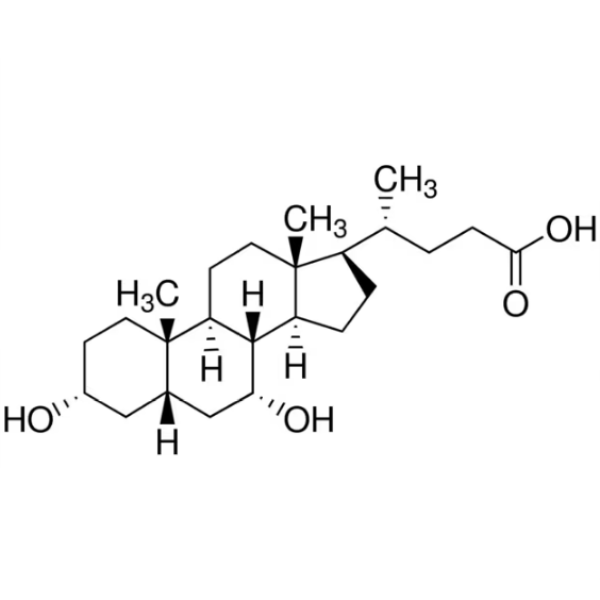 Dieser Stamm wurde aus der Galle von Hühnern, Enten, Gänsen usw. extrahiert. Er wird durch Cholesterin in der Leber synthetisiert und ist ein freier Gallensäurebestandteil in der normalen Galle. Galle enthält Cholsäure und Chenodesoxycholsäure zu 30 % bis 40 %, Desoxycholsäure zu 10 % bis 20 %, Lithocholsäure und Ursodesoxycholsäure zu weniger als 5 %, außerdem gibt es Lecithin, Cholesterin und Bilirubin sowie andere Ausscheidungen. Es kann die Synthese und Sekretion von Cholesterin reduzieren, die Gesamtcholesterinausscheidung der Galle verringern, die Auflösungskraft der Galle zu Cholesterin verbessern und die Dissoziation von Cholesterin von Steinen fördern, um die Wirkung der Auflösung von Steinen zu erzielen.