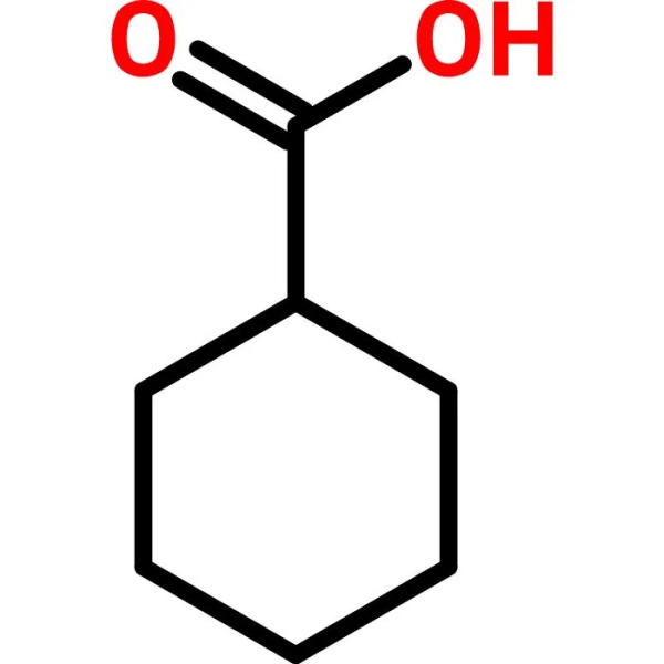 Cyclohexancarbonsäure (CAS: 98-89-5) ist eine Carbonsäureverbindung mit der Summenformel C7H12O2. Sie ist auch als Hexahydrobenzoesäure bekannt und ihre Struktur besteht aus einem Cyclohexanring mit einer daran gebundenen Carbonsäuregruppe (-COOH).
