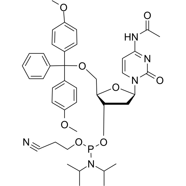 DMT-dC(ac) Phosphoramidit (CAS: 154110-40-4) ist eine Art Phosphoramidit, das bei der Synthese von Oligonukleotiden verwendet wird. Es ist ein Phosphoramidit-Derivat von Cytidin, einem Nukleosid, das in DNA und RNA vorkommt. DMT-dC(ac) Phosphoramidit wird bei der Herstellung synthetischer DNA- und RNA-Stränge verwendet und ist ein wichtiger Bestandteil der Phosphoramidit-Methode der Oligonukleotidsynthese. Aufgrund ihrer hohen Effizienz und Genauigkeit ist diese Methode zur am weitesten verbreiteten Methode zur Synthese von DNA- und RNA-Strängen geworden.