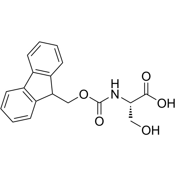 Fmoc-L-Serin (Fmoc-Ser-OH) (CAS: 73724-45-5) ist eine N-Fmoc-geschützte Form von L-Serin (S270975). L-Serin ist eine nichtessentielle Aminosäure, die für die Synthese von Sphingolipiden und Phosphatidylserin erforderlich ist, Verbindungen, die für das neuronale Überleben des Zentralnervensystems wichtig sind. L-Serin ist auch wichtig für den Zwischenstoffwechsel in eukaryotischen Zellen.