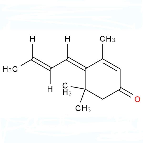 | Synonyme | Megastigmatrienon; (E,E/E,Z)-Tabak-Cyclohexenon; (E,E)-4-(2-Butenyliden)-3,5,5-Trimethylcyclohex-2-en-1-on; 3,5,5-Trimethyl-4-Butenyliden-2-Cyclohexen-1-ein; 4-(2-Butenyliden)-3,5,5-Trimethylcyclohex-2-en-1-on |