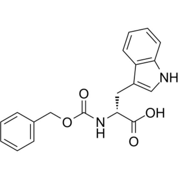 Nα-Cbz-D-Tryptophan (Z-D-Trp-OH) (CAS: 2279-15-4) ist eine N-Cbz-geschützte Form von D-Tryptophan. D-Tryptophan ist ein unnatürliches Isomer von L-Tryptophan und wird als essentielle Aminosäure eingestuft. D-Tryptophan wurde als Teil einiger wirksamer Oxytocin-Antagonisten (Acetat: O878500) zur Behandlung vorzeitiger Wehen synthetisiert.